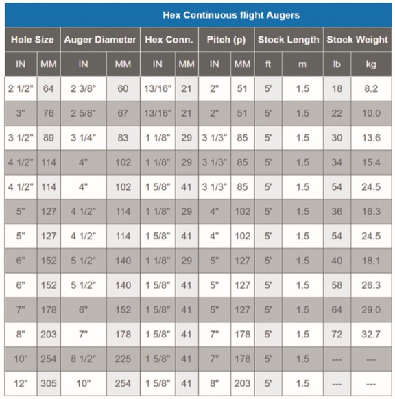 Product name: Hexcor Auger 6" x 5' with 1-5/8" Hex connection Continuous flight